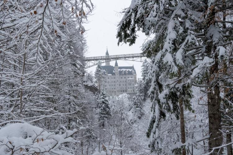 Winter Access Notice: Please be advised that the Marienbrücke, which crosses the Pöllat Gorge, may close during the winter months if weather conditions become unsafe. Such closures do not affect castle entry or the timing of guided tours, which will proceed as scheduled. For the latest updates on bridge accessibility, please check https://neuschwanstein-journey.com/
